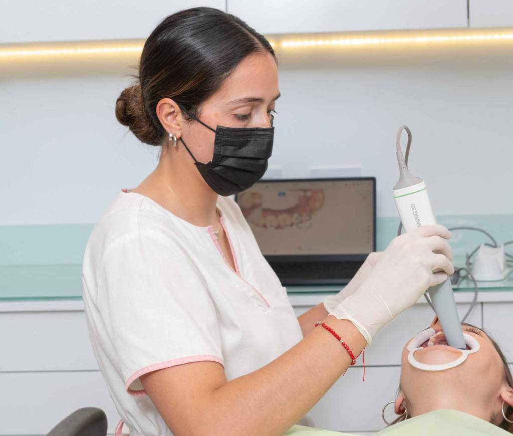 El escáner intraoral es una pequeña cámara que se introduce dentro de la boca captando miles de imágenes en alta definición y las transforma en un modelo digital en 3D de tu boca. Este modelo se puede girar, ampliar y analizar con gran detalle, lo que permite a tu odontólogo planificar tu tratamiento de manera exacta y personalizada.